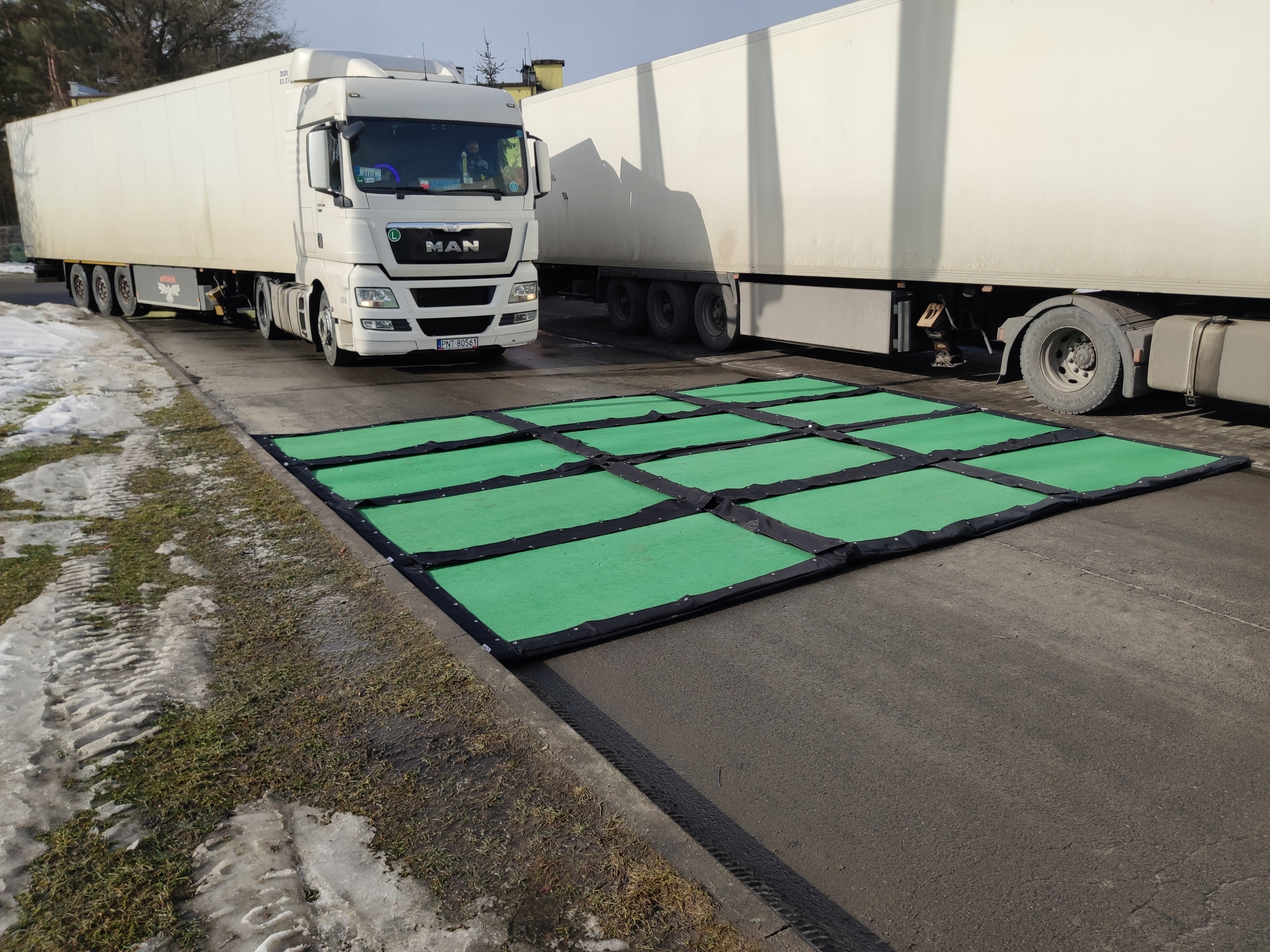 - Щоб килимок виконував свою роль, його необхідно розмістити безпосередньо у в'їзних воротах. Під колеса рекомендується підкласти комплект із 2 дезінфекційних килимків у вигляді паралельних смуг.