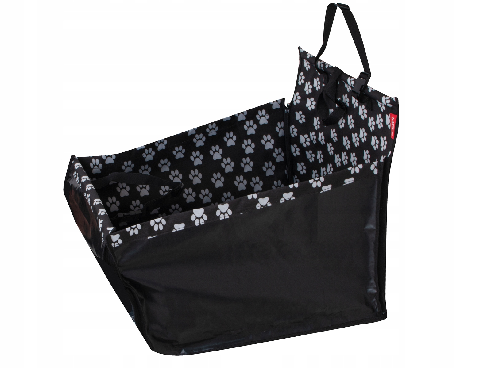Автомобільний килимок із чарівним візерунком білих відбитків лапок на чорному тлі ідеально підходить для подорожей з вашим вихованцем.