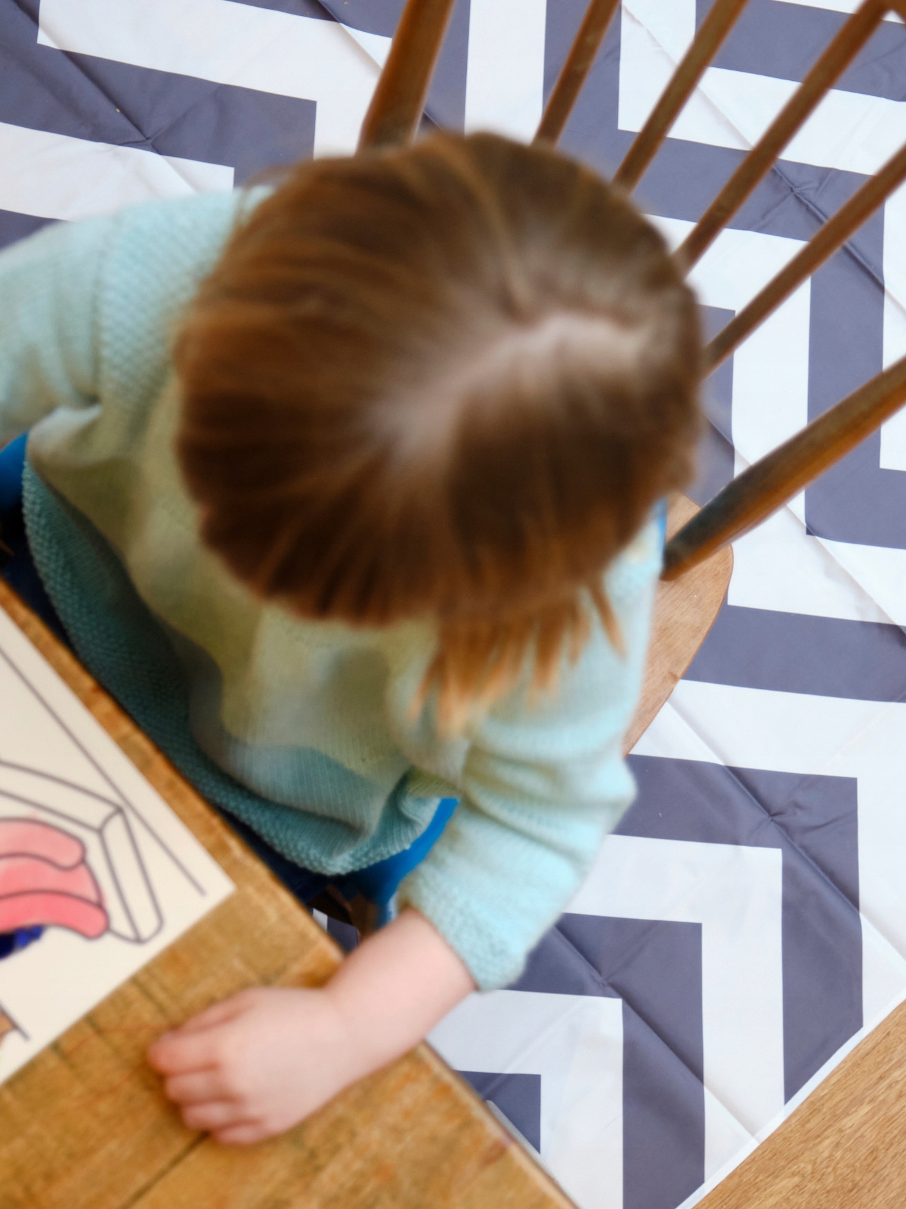 Килимок ідеально захищає підлогу від випадкових забруднень, спричинених їжею або іншою діяльністю дитини (їжа, ігри з мистецтвом, ігри з кінетичним піском тощо).