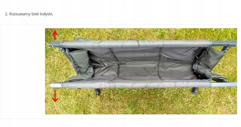 Колиска має телескопічнініжки з регульованою довжиною, дві бічні кишені та чохол верх, що застібається на каркас.