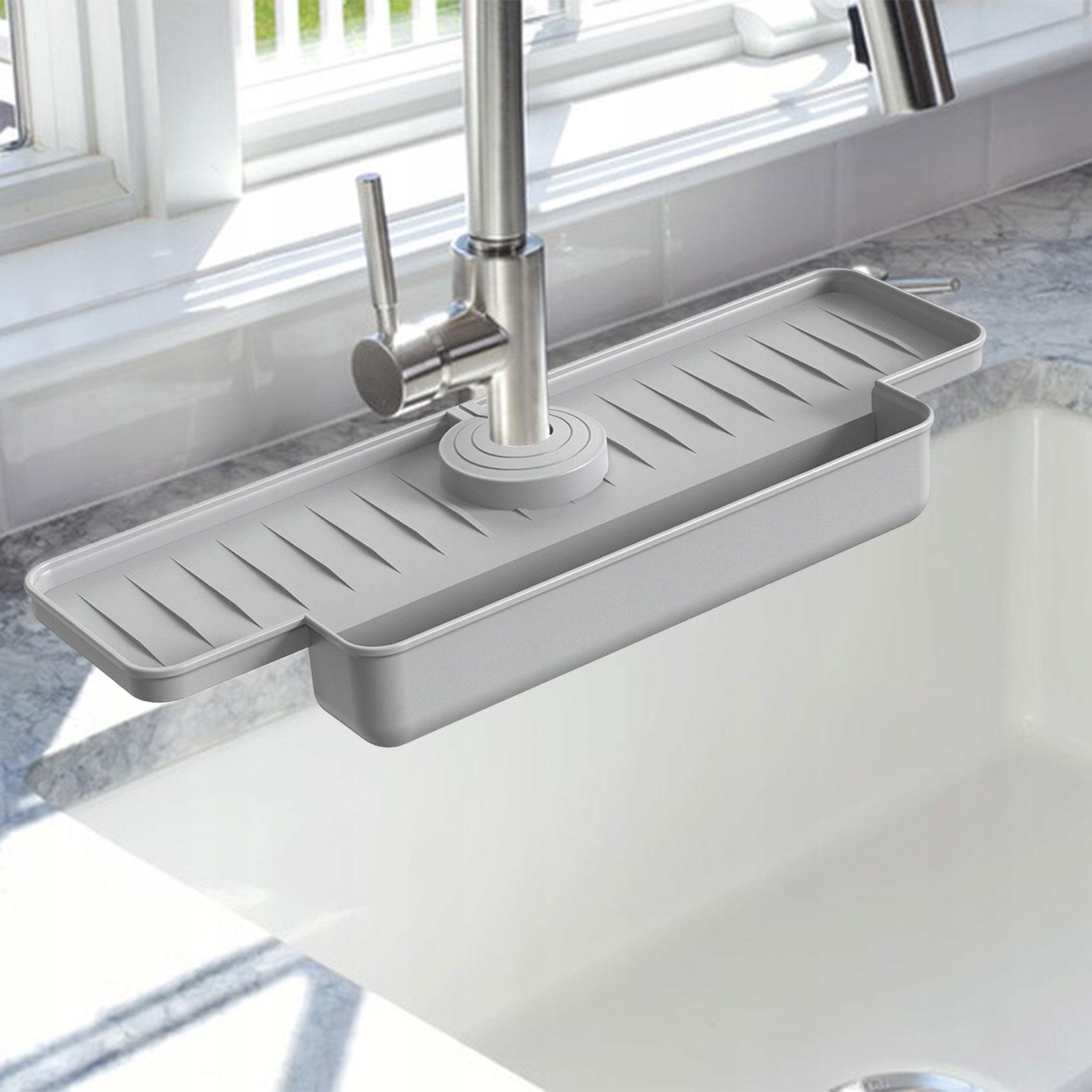 [Універсальний органайзер для раковини]: силіконовий килимок для збору води з крана — це не лише підставка для крана, але й органайзер для раковини. Зливний килимок для зливного крана містить інструменти для чищення, щітки, губки.