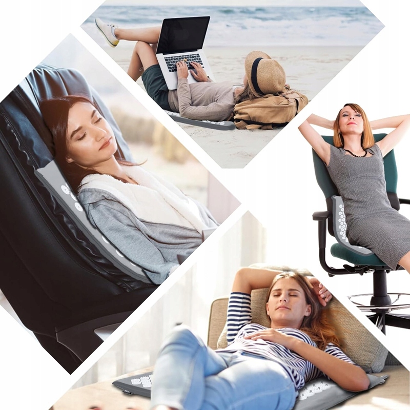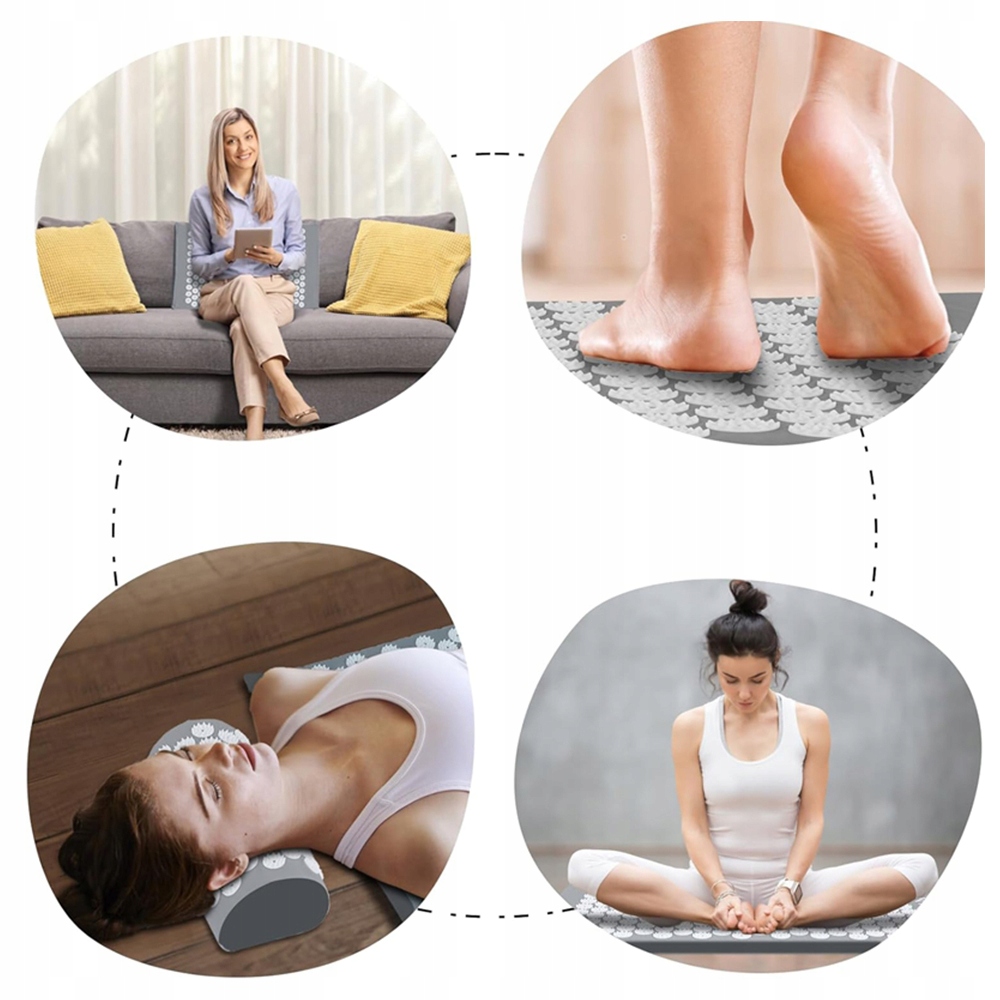 Цей килимок з акупресурою оснащений точками ергономічного масажу. У килимку є 171 пластикова плитка, а на подушці 48. Набір акупресури має загалом 219 областей, 27 точок акупресури в кожній області та 5913 точок масажу, які щільно розташовані та рівномірно щільні. Лежачи на килимку для акупресури, тисячі точок акупресури стимулюють нерви, покращують кровообіг і зігрівають усього тіла.
