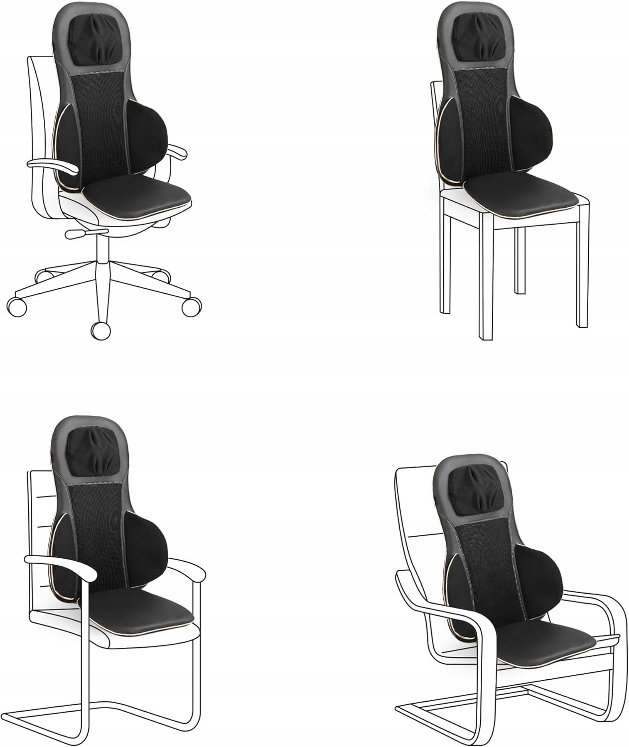 Масажер MC 825 у вигляді чохла на сидіння покращить ваше самопочуття після напруженого дня. Масажер особливо корисний для лікування напружених м'язів і втомлених тканин. Масажер шиацу MC 825 має дві масажні головки - шия/плечі та дві обертові масажні головки шиацу для трьох зон верхньої частини спини, нижньої частини спини та всієї спини.