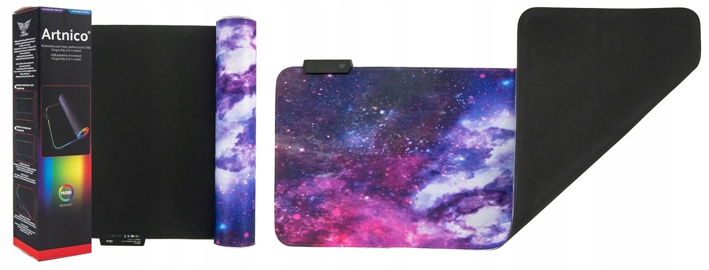 Створіть ідеальну атмосферу для гри! Цей унікальний планшет Artnico стане чудовою ідеєю для подарунка фанатам комп'ютерних ігор. Оснащений світлодіодним підсвічуванням у 7 кольорах із 5 ефектами RGB, він додасть ігрового характеру вашій робочій станції. Світлодіодне підсвічування приховано в підкладці килимка, щоб воно не заважало керувати мишею.