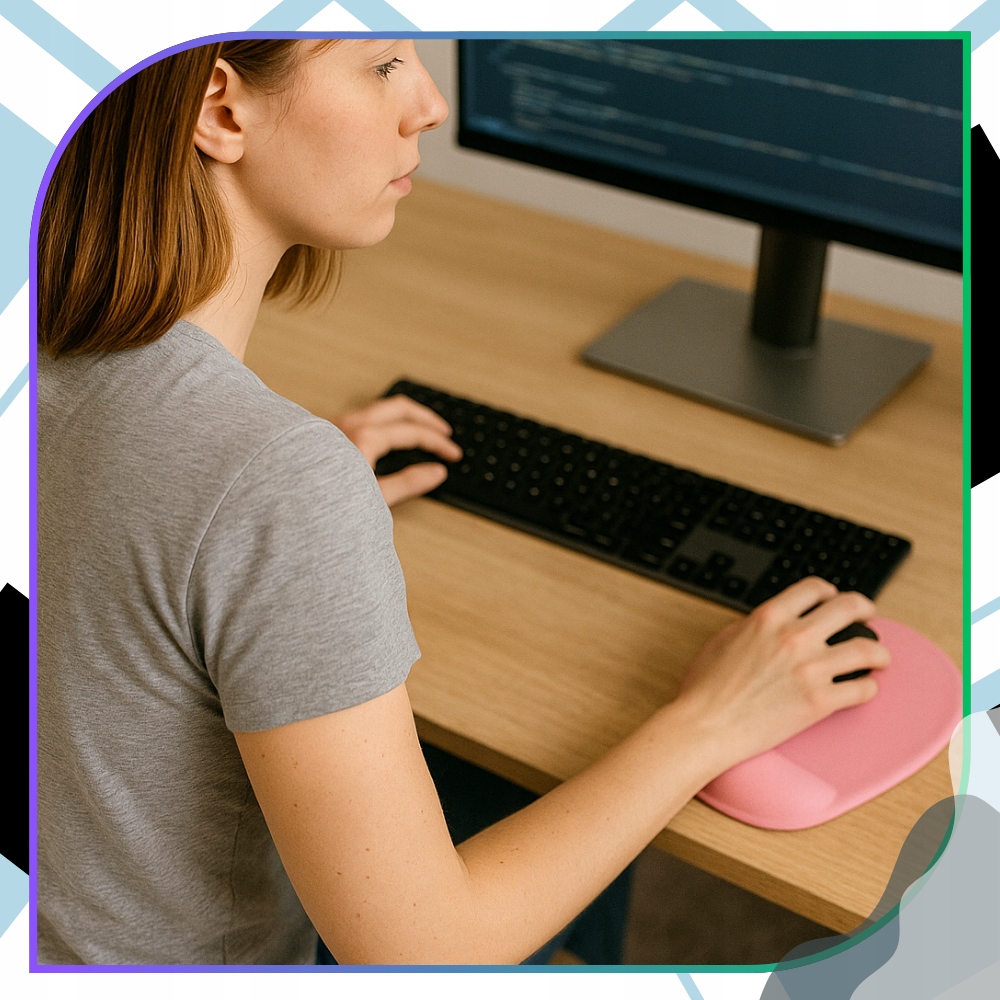 ✅ Контурна подушка для зап'ястя забезпечує стабільну та м'яку підтримку, значно розвантажуючи руку під час багатогодинної роботи. Завдяки цьому ваші рухи більш природні, а зап'ястя менше втомлюється. Оптимальні розміри 23 × 19 см гарантують комфорт використання, не займаючи зайвого місця на столі.