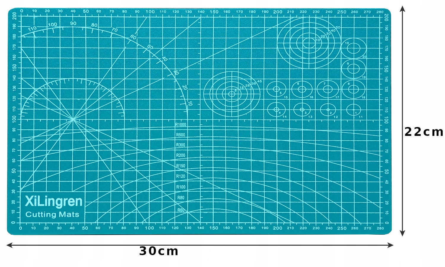 Килимок має позначені сантиметри, які допомагають виміряти ідеальний розмір. Він також має напрямні для вимірювання кутів, необхідних для вирізання геометричних фігур.