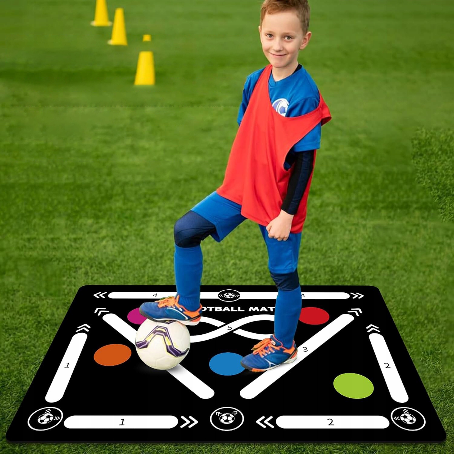 ⚽ Футбольна підготовка покращує свої навички дриблінгу, здобувайте хороший контроль над м'ячем і, ймовірно, домінує над поле. Цей навчальний килимок підходить для гравців усіх рівнів, які хочуть покращити свою техніку.