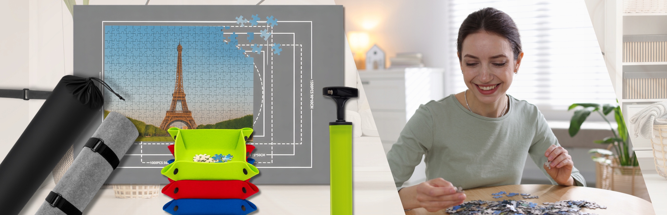 ➡️ УНІВЕРСАЛЬНИЙ РОЗМІР З ДРУКУВАННЯМ – Для пазлів від 500 до 1500 елементів.