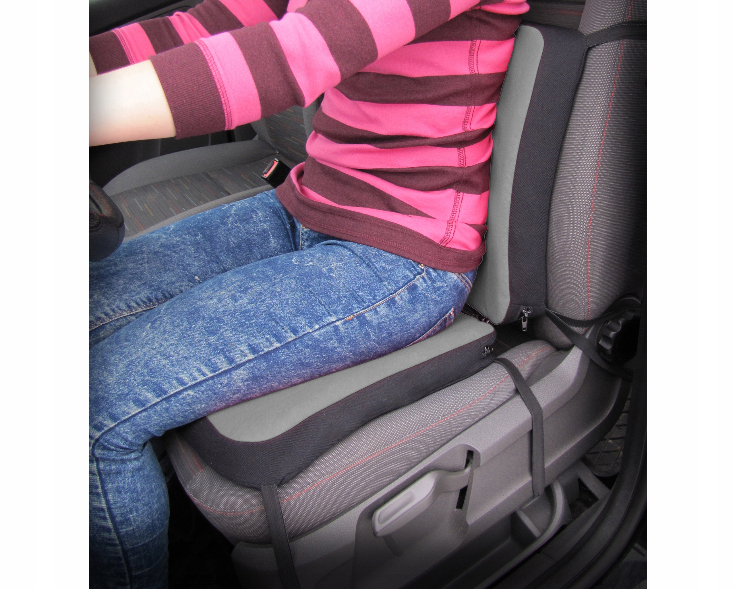 - подушка оснащена додатковою системою гумових стрічок і кріпильних гачків, завдяки чому вона стабільно прилягає до сидінь без зміщення,