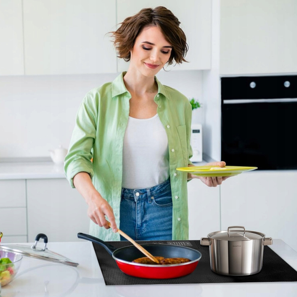 ✅Виготовлено зі спеціально розробленого скловолокна, покритого рідким харчовим силіконом для збільшення терміну служби індукційної плити.