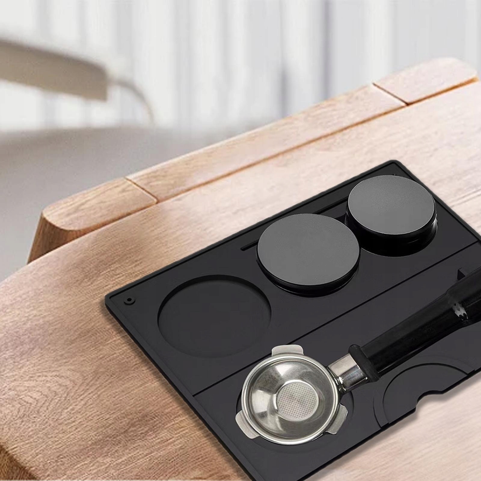 [не -ковзання та простий в очищенні] силіконова прокладка для аксесуарів для кави є м'якою і не -ковзанням, її можна натиснути близько до столу, щоб уникнути ковзання. Силіконова саботажна прокладка легко очищається і її можна промивати безпосередньо водою.
