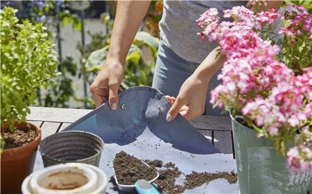 З килимком для посадки M city gardening GARDENA ви можете підтримувати чистоту на балконі чи терасі під час посадки рослин. Килимок розкладається на столі або підлозі. На нього можна поставити всі необхідні інструменти, горщики, лопату і грунт для горщиків, посадити або пересадити рослини. У результаті покрита поверхня захищена, а ґрунт і шматки рослин, які відпадають під час посадки, збираються на килимку, щоб потім ви могли їх легко видалити. Посадковий килимок виготовлено з матеріалу, який не вбирає вологу, його легко чистити та можна скласти після використання, заощаджуючи місце для зберігання.