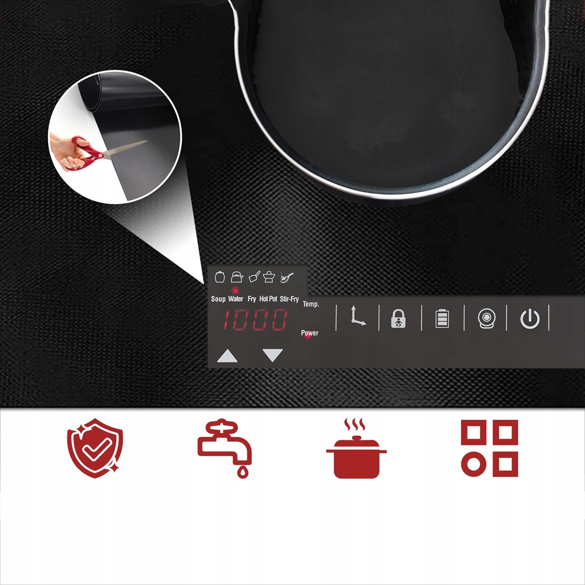 - ✔️🔰 Високоякісні матеріали: Індукційна варильна поверхня виготовлена зі спеціально розробленого скловолокна та покрита рідким платиновим силіконом, схваленим для контакту з їжею (без BPA), що подовжує термін служби плити та забезпечує її постійну чистоту.