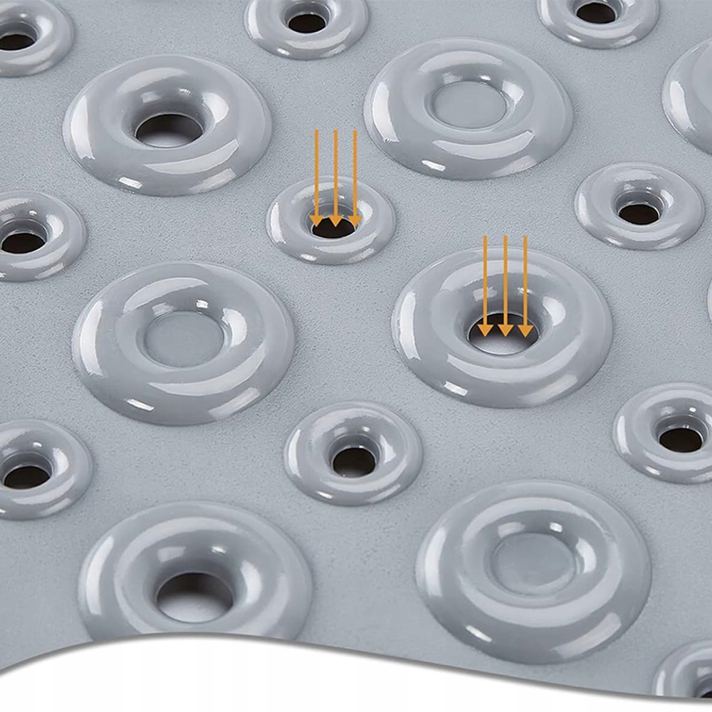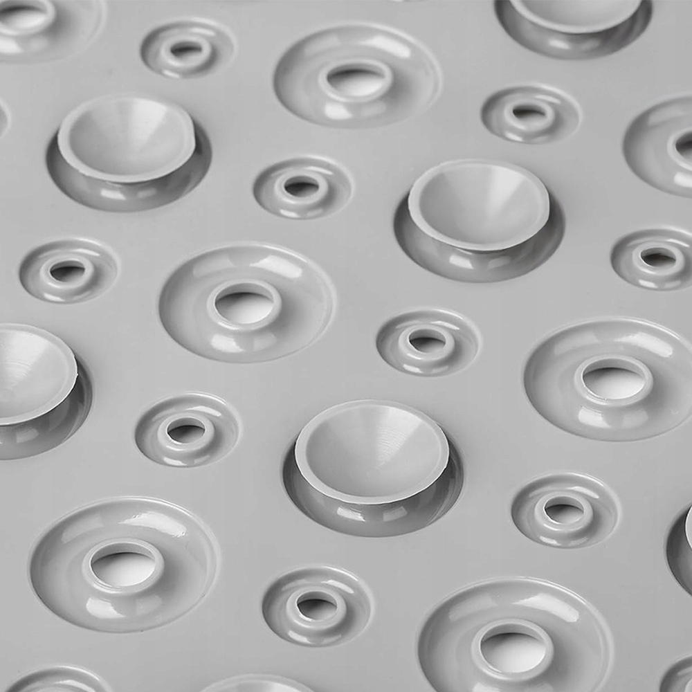 Матовий душ -спалах має 72 сильні присосні чашки на задній частині килимка для душу проти слизу, які забезпечують сильну адгезію та стабільність. Килим для душу проти слизу до ванни можна сильно поглинути на гладкій землі і не рухається, коли ви приймете ванну. Килимок для душу проти слизу дуже безпечний для людей похилого віку та дітей вдома