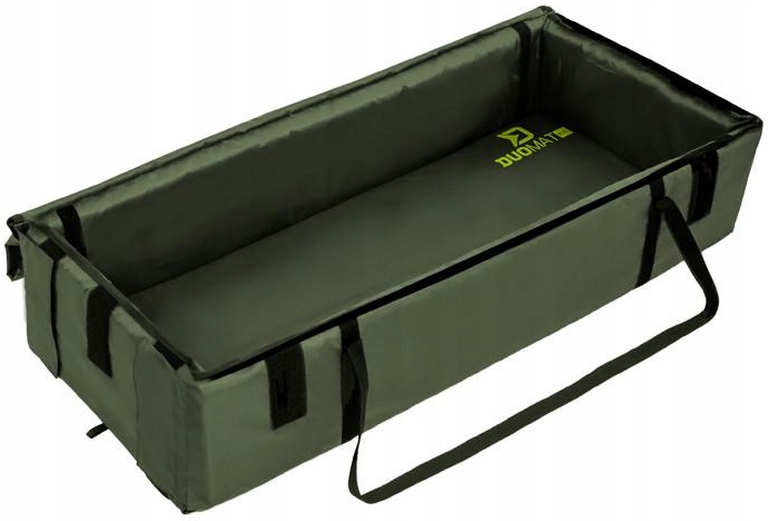 Назва DOUMAT означає, що килимок можна використовувати двома способами. Як стандартний килимок без країв, або ці краї можна підняти та прикріпити за допомогою липучок, розташованих у кожному кутку. Відпускаючи рибу, потрібно відстебнути лише один край, щоб риба могла вільно ковзати назад у воду. Килимок має два гумові ремені, призначені для згортання для транспортування. У порівнянні з базовим Duomat, ця версія включає міцні текстильні ручки, які дозволяють переносити килимок.