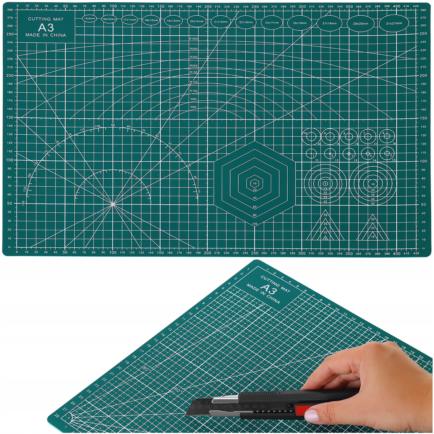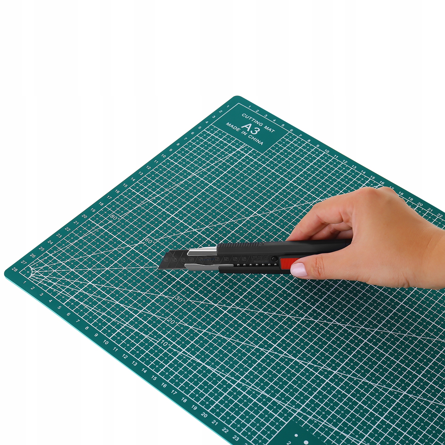 Двосторонній килимок має нековзку поверхню та ідеально підходить для різання різних типів матеріалів, таких як картон або тканина.