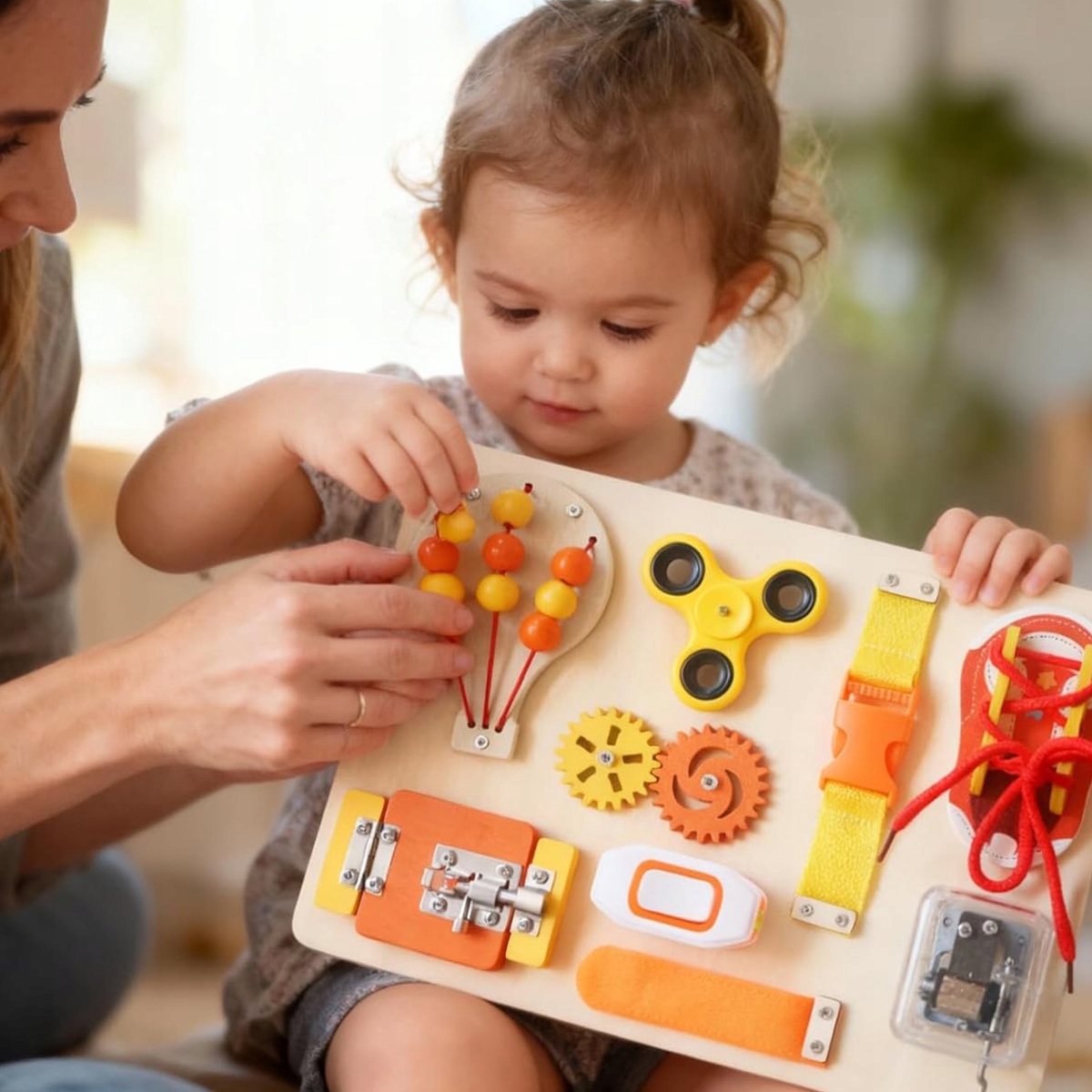 ★ Сенсорна дошка — це ідеальне поєднання веселощів і навчання завдяки пазлам, цифрам, іграшкам із замками тощо.