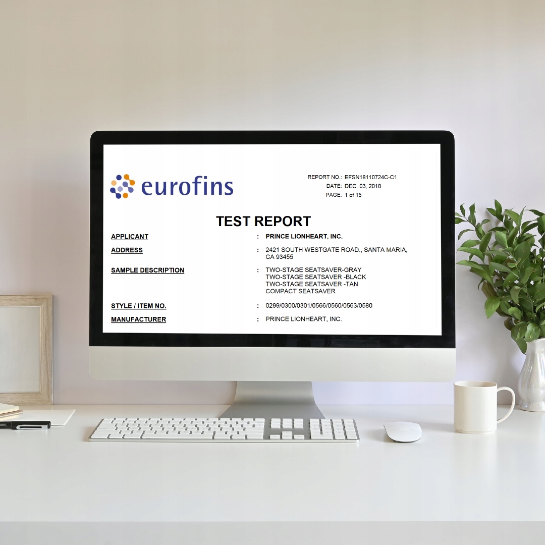 Килимок пройшов суворі випробування у відомій лабораторії Eurofins, які підтвердили (номер звіту EFSN18110724C-C1):
