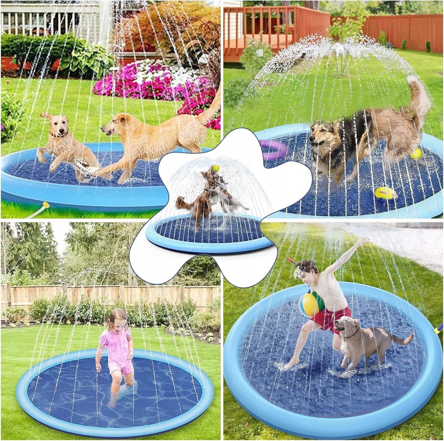 Покращіть свої враження від водних ігор на свіжому повітрі за допомогою цієї великої спринклерної іграшки діаметром 59", яка може вмістити до чотирьох осіб. Перетворіть свій задній двір на міні-басейн за допомогою цієї універсальної іграшки з невеликими отворами навколо кільця, які викидають воду для додаткового захоплення.
