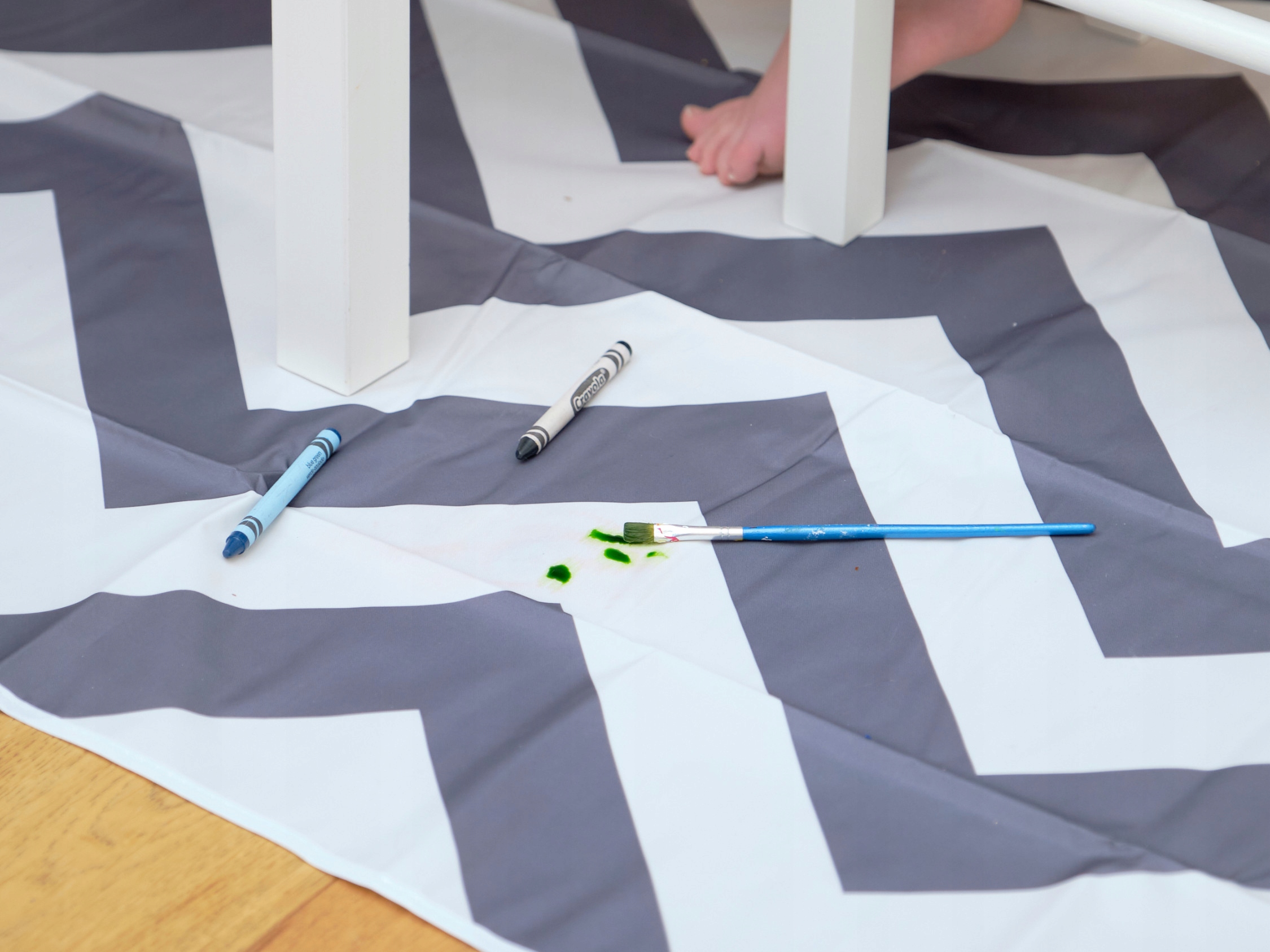 Килимок ідеально захищає підлогу від випадкових забруднень, спричинених їжею або іншою діяльністю дитини (їжа, ігри з мистецтвом, ігри з кінетичним піском тощо).