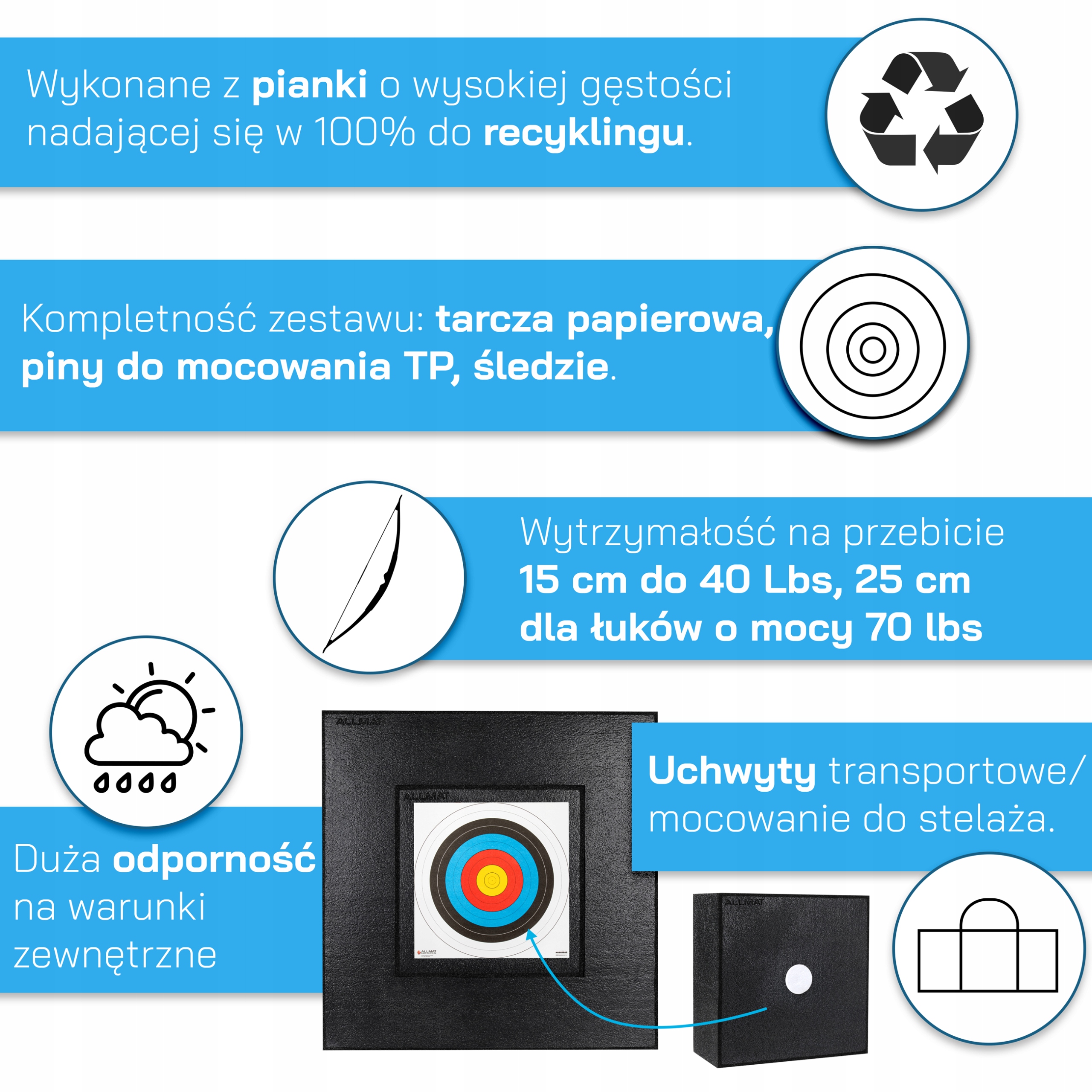 Килимок для стрільби з лука з пінопласту товщиною 25 см, призначений для класичних і складних луків із тяговою вагою до 70 фунтів.