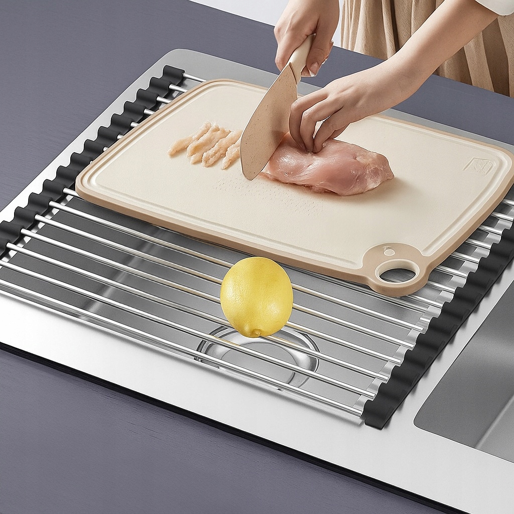 Рулонний килимок від торгової марки Hydrosan- це функціональне та сучасне рішення, яке підійде на будь-яку кухню, підвищить комфорт роботи та організацію робочого простору. Завдяки конструкції з міцних сталевих стрижнів і гнучких країв сушарку можна легко висунути на раковину або стільницю, створюючи додатковий простір для сушіння посуду, столових приборів, овочів або фруктів. Після закінчення роботи килимок можна швидко згорнути в рулон і прибрати, що економить простір і підтримує порядок на кухні. Це практичне рішення, яке ідеально підходить як для маленьких, так і для просторих кухонь, де важлива ергономіка та комфорт щоденного використання.