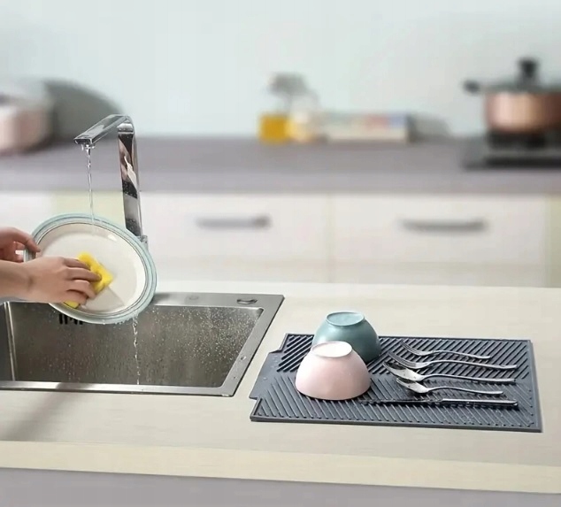 ✔️ ПРАКТИЧНО - практичний килимок для сушіння посуду. Ідеально підходить для сушіння посуду, столових приладів, склянок і кухлів. Килимок має розміри 41,2 x 33,5 x 0,5 см.