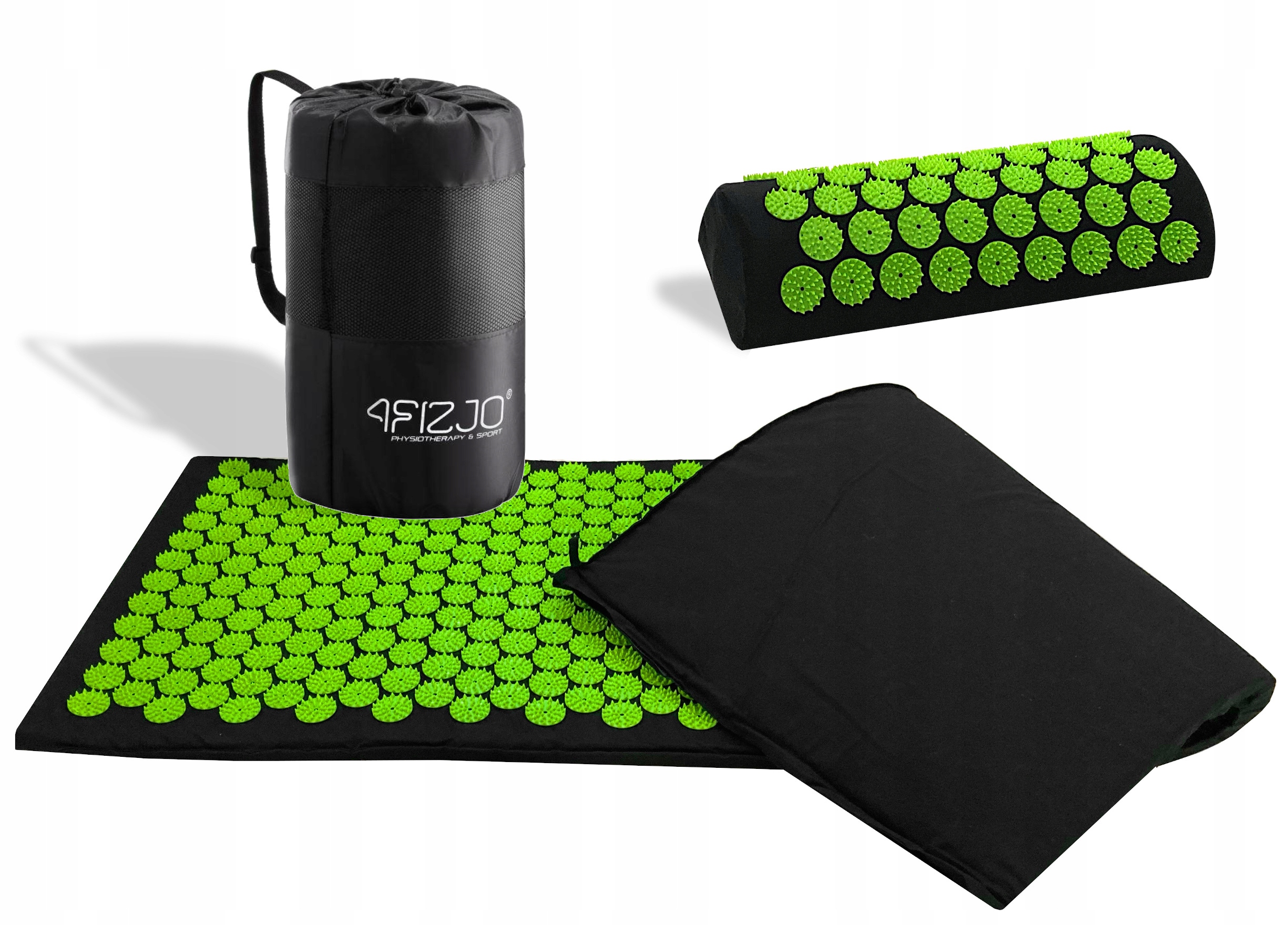 Реабілітаційний килимок 4Fizjo для точкового масажу з подушкою чорно-зеленого кольору