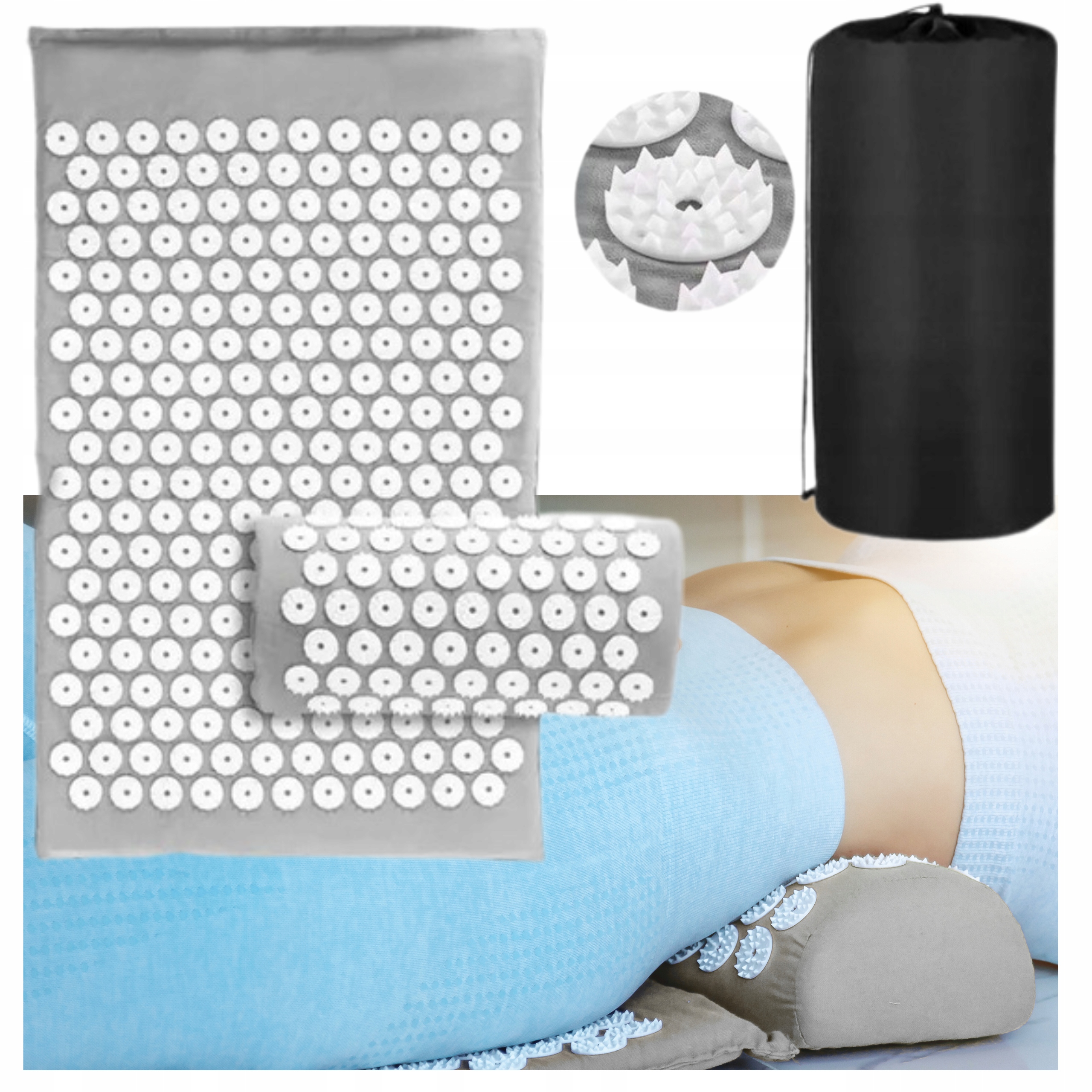 КИЛИМОК З ШИПАМИ ДЛЯ ТОЧКОВОГО МАСАЖУ ЗДОРОВ'Я З ПОДУШКОЮ ДЛЯ РОЗСЛАБЛЕННЯ