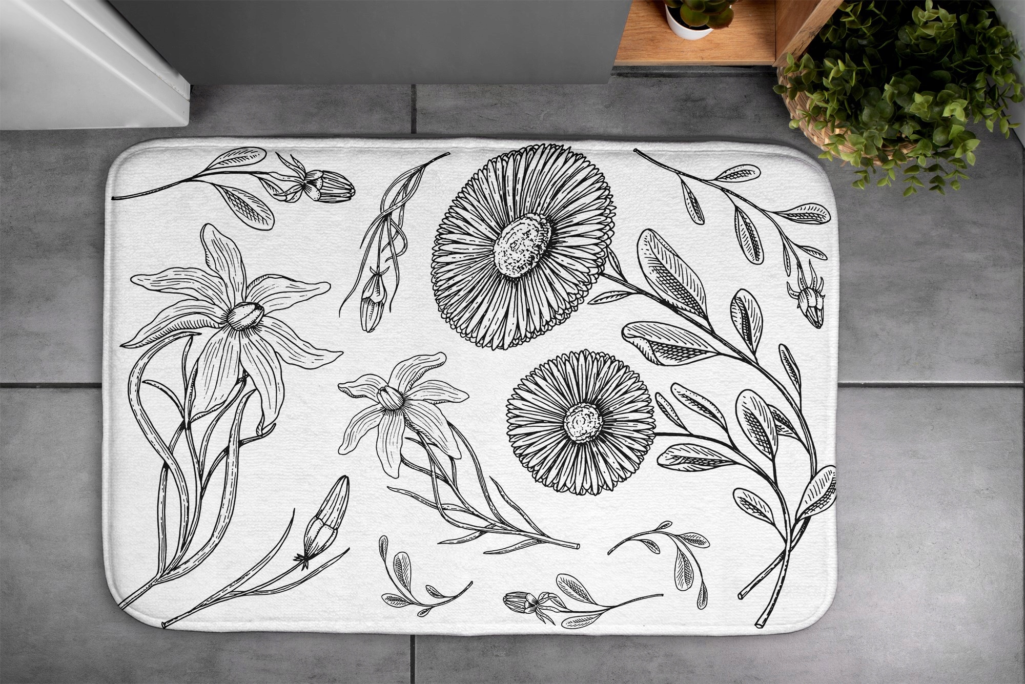 Килимок для ванної кімнати, мікс візерунків, візерунок квітів, 75х45 см