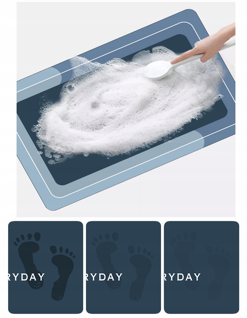 - Швидке поглинання - килимок миттєво вбирає воду, висихає протягом хвилини після намокання