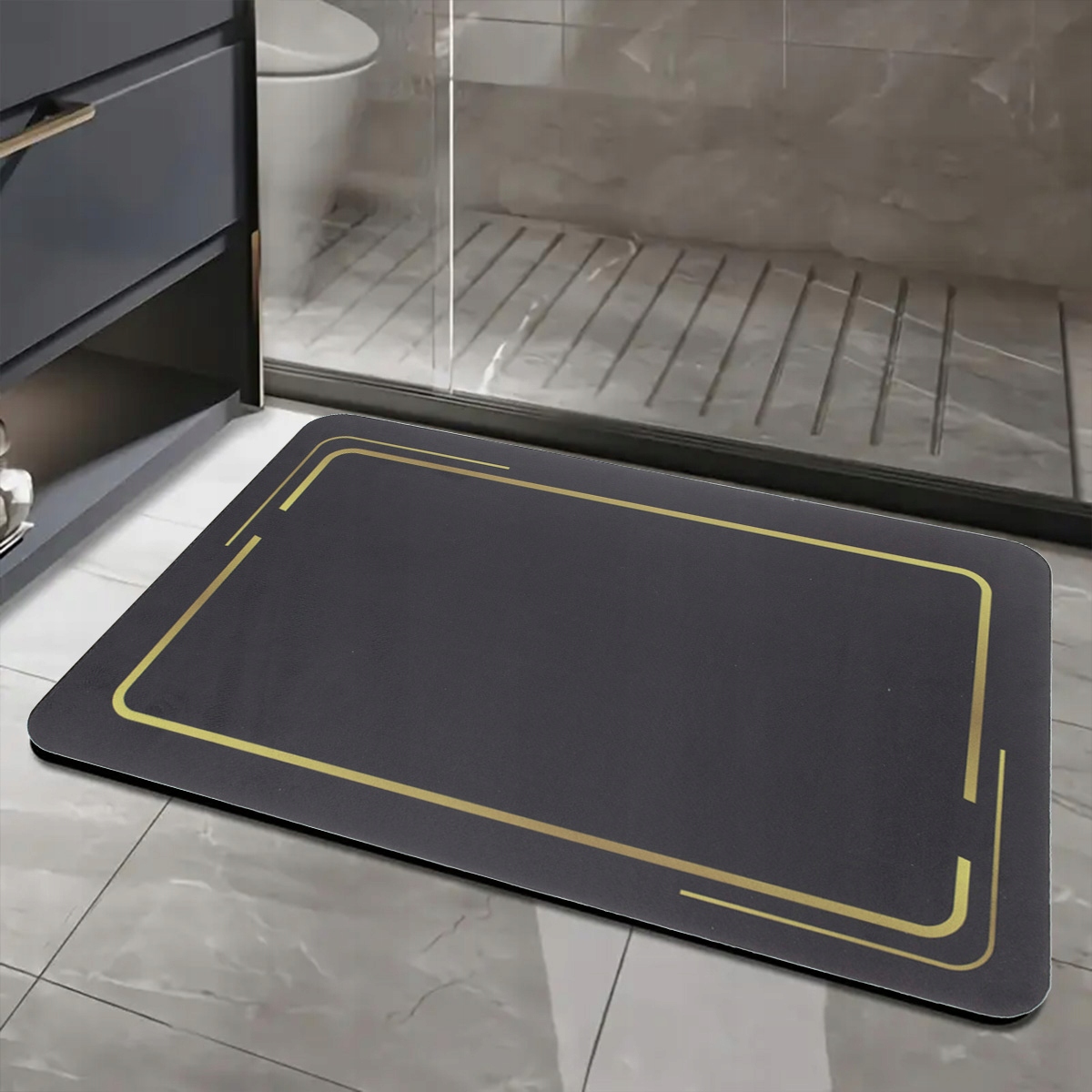 Колір килима додає елегантність , створюючи гармонійний та стильний декор ванної кімнати.