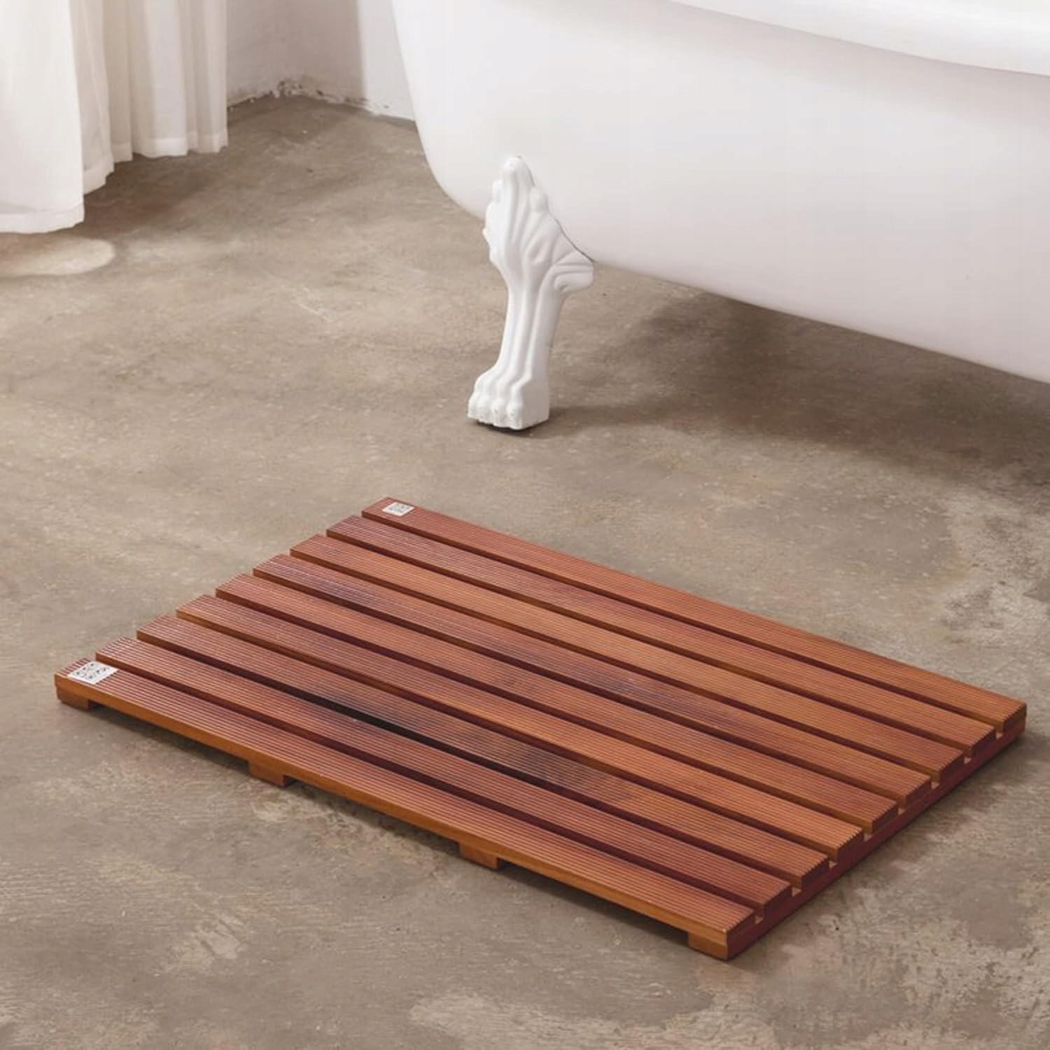Потурбуйтеся про безпеку та стиль у вашій ванній кімнаті чи спа-зоні! Ми пропонуємо високоякісні килимки з елітного тикового дерева. Завдяки унікальним властивостям тика та продуманому дизайну, килимок є ідеальним, гігієнічним та довговічним рішенням для душу, поруч з ванною або як елемент зовнішнього декору.