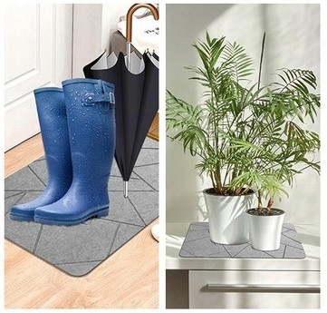 Корисність цього килима не закінчується у ванній! Помістіть килимок з діатомічного ґрунту біля вхідних дверей на мокрі взуття або використовуйте його як килимки для сушіння пластин та посуду на стільниці.