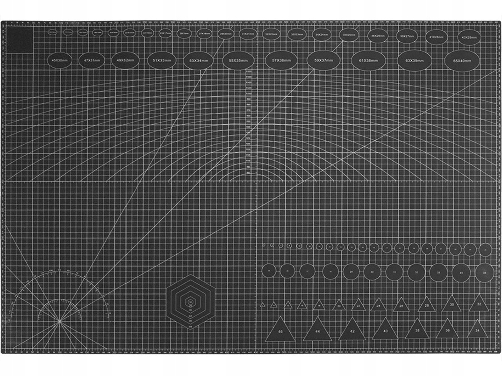 Після розрізання він залишається гладким. Він має шар з обох боків із надрукованою на ньому шкалою сантиметрів вертикально та горизонтально з позначеними кутами , транспортири, паралельні прямі та фігури.