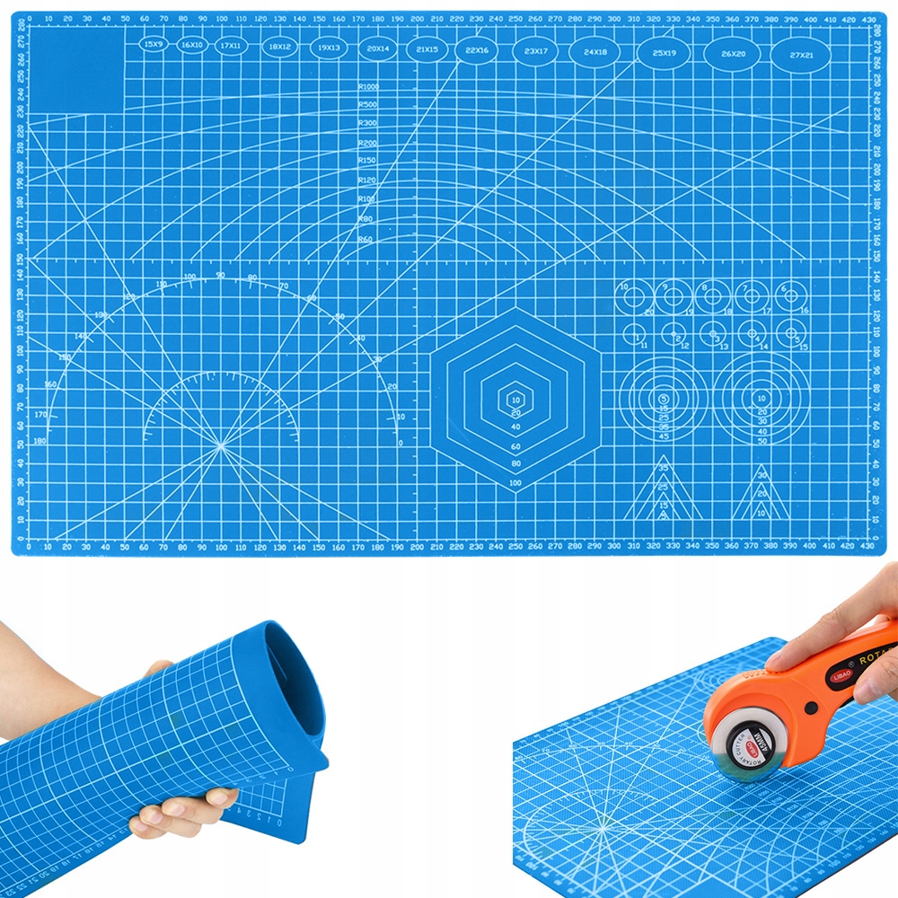 ➡️Килимок для різання, що самовідновлюється, виготовлено зі спеціального матеріалу, який частково загоюється під час розрізання лезом. Після розрізання він залишається гладким. З обох боків він має шар, на якому надруковано сантиметрову шкалу по вертикалі та горизонталі, з позначеними кутами, транспортирами, паралельними лініями та цифрами.