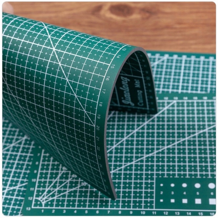 Двосторонній килимок має нековзку поверхню і ідеально підходить для різання різних видів матеріалів, таких як картон або тканина.