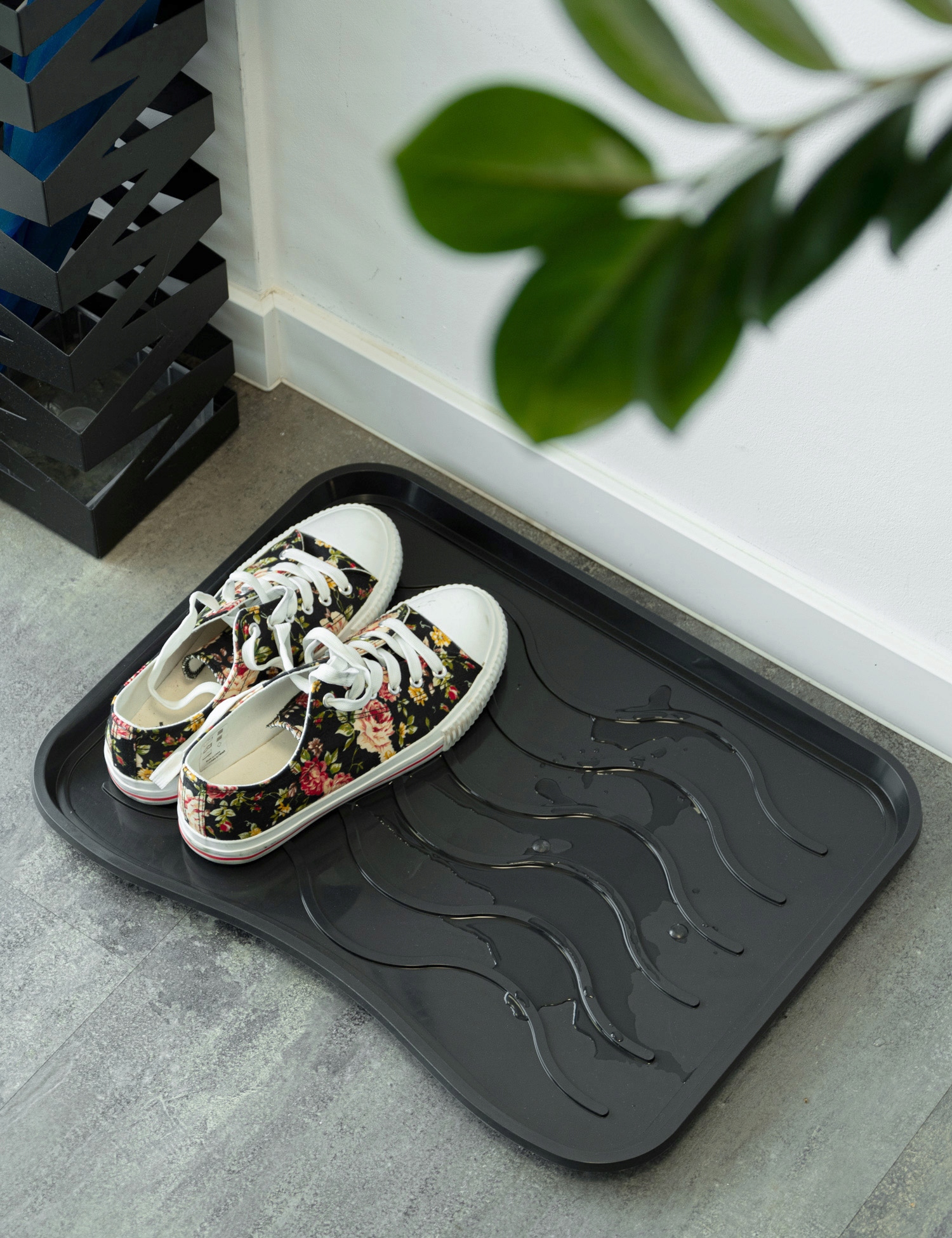 Основна підставка взуття полягає у захисті підлоги від бруду. Завдяки цьому ви можете покласти брудні або мокрі черевики на основу, що допомагає зберегти чистота всередині кімнати. Зроблений з міцного чорного пластику, це практичний і універсальний продукт.
