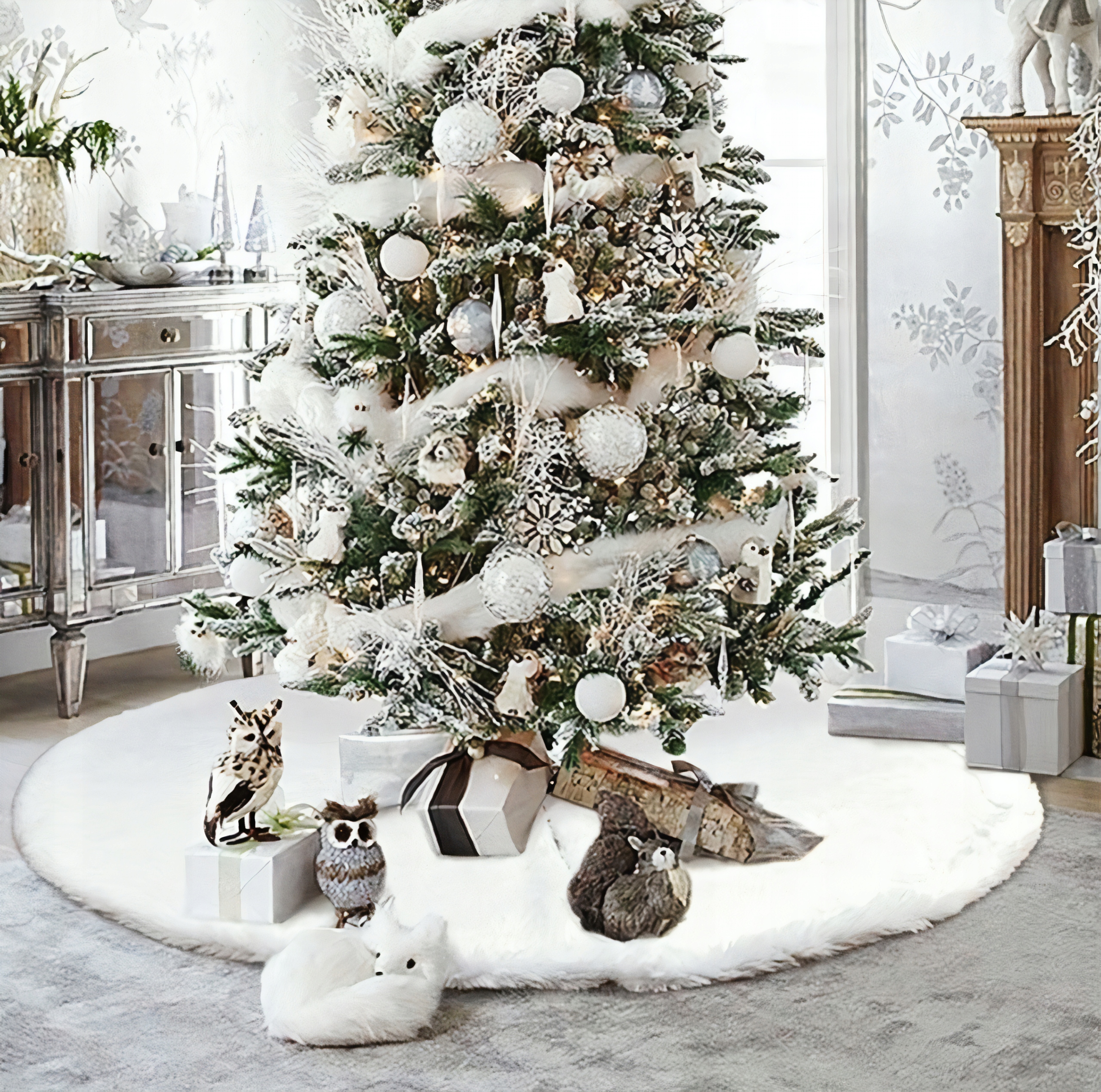 Килимок для ялинки — ідеальний завершальний штрих до прикраси ялинки! Він чудово виглядатиме біля будь-якої ялинки, незалежно від деталей її розташування. Ви можете поєднати його з будь-яким дизайном інтер'єру та з будь-яким дизайном вашої ялинки. Відтінок іколір, що імітує сніг дуже універсальний і завжди ефектно підкреслить неповторний, зимовий настрій грудневих свят. Створіть автентичний сніговий візерунок навколо ялинки!
