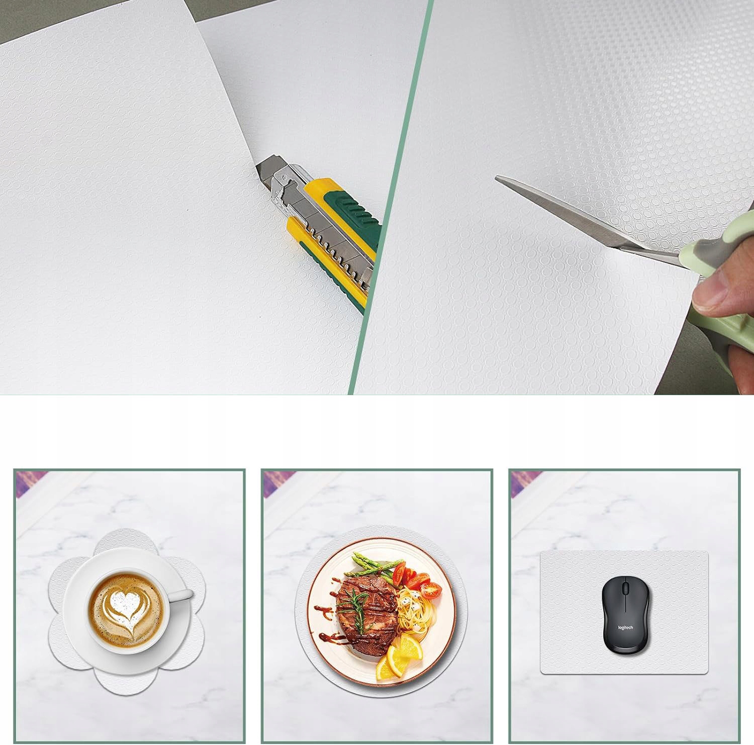 Прозорі килимки для ящиків можна розрізати окремо. Наприклад, він запобігає ковзанню тарілок і склянок.