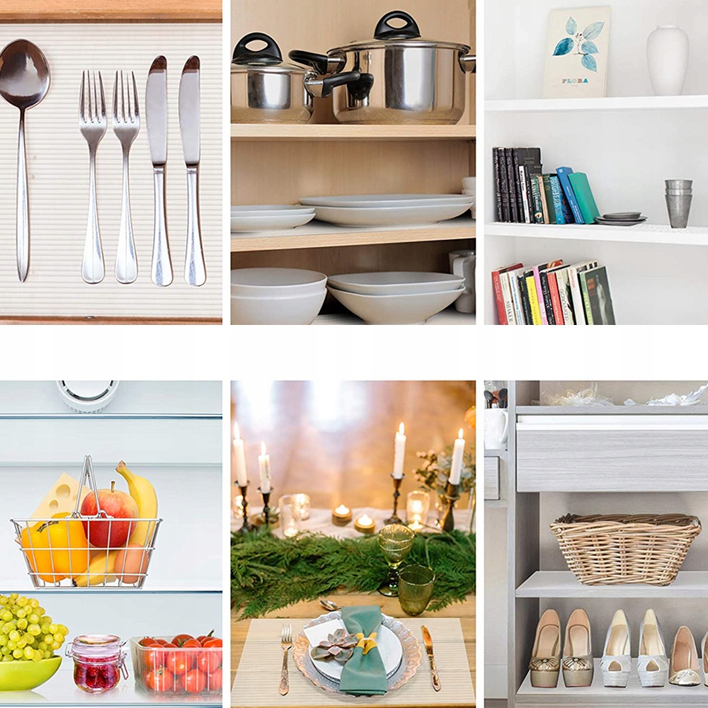- 🍰 - 【Надзвичайний розмір】: b>45x610 см, надзвичайно великий розмір, придбайте нашу вставку для полиць, ви отримаєте довгу безперервну довжину та заощадите свій час. Просто виріжте вставку побутовими ножицями або лезом бритви та просто покладіть її в ящик.