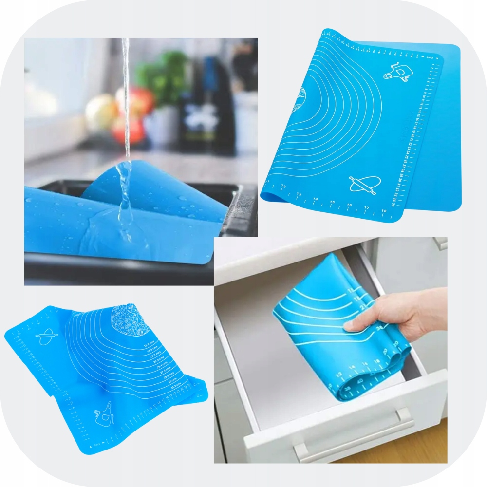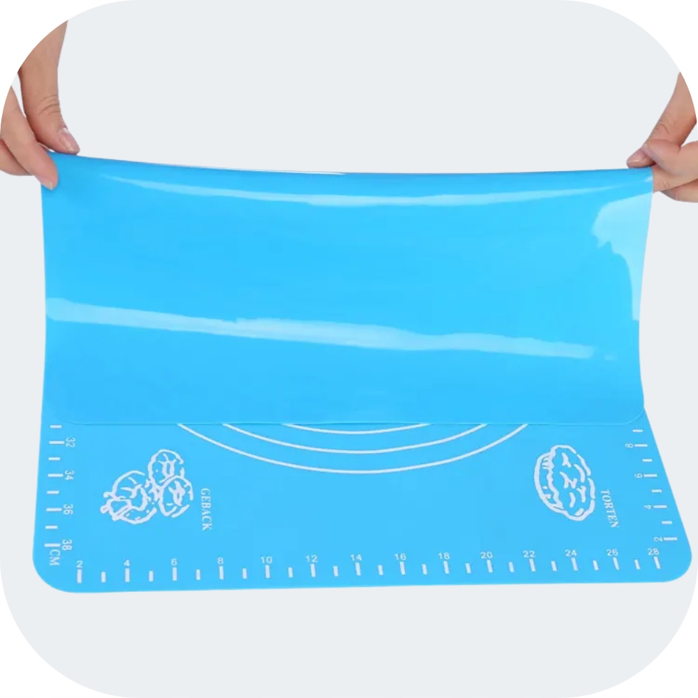 Сучасний, згорнутий силіконовий килимок, з одного боку маємо антипригарне покриття, з іншого боку воно тримає ідеально підходить для стільниці, запобігаючи переміщенню килимка