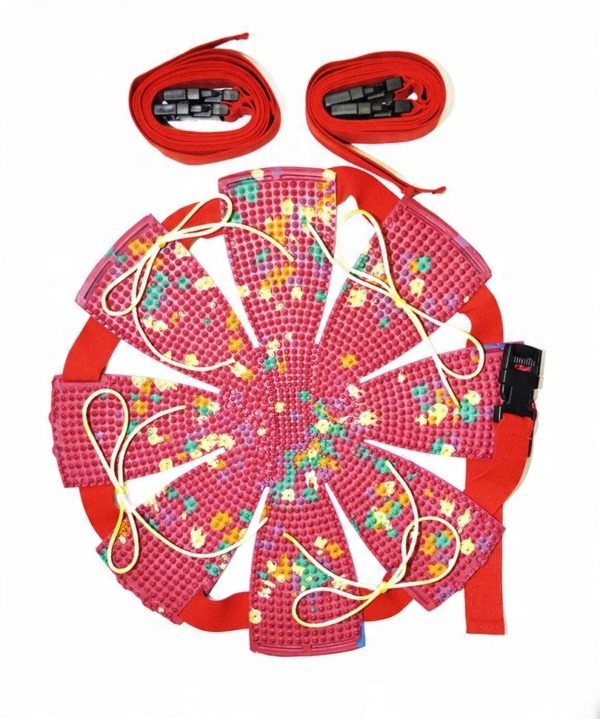 Масажер Ромашка може також ефективно використовувати на великих ділянках суглобів, оскільки він адаптується до форми тіла та максимально контактує зі шкірою. Ідеально підходить для масажу голови - для поліпшення концентрації, стимуляції кровообігу або зміцнення волосяних цибулин. Регулювання килимка Chamomile з еластичними лямками до зони великих суглобів, грудей, попереку та живота дозволяє здійснювати рухи під час процедури.