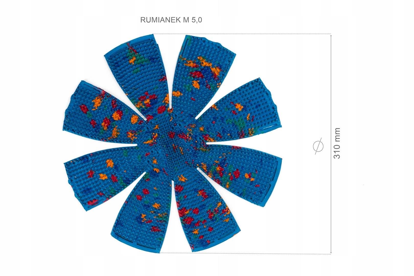 Килимок «Ромашка» 5.0 Ляпко є універсальним. Його характерними особливостями є незвичайна форма, велика ударна поверхня, рухомі пелюстки та кріплення. Все це забезпечує підвищену терапевтичну ефективність масажера. Його можна використовувати на спині, руках, грудях, ділянці хребта, крижово-поперековому відділі, а також зручно лягти на нього животом.