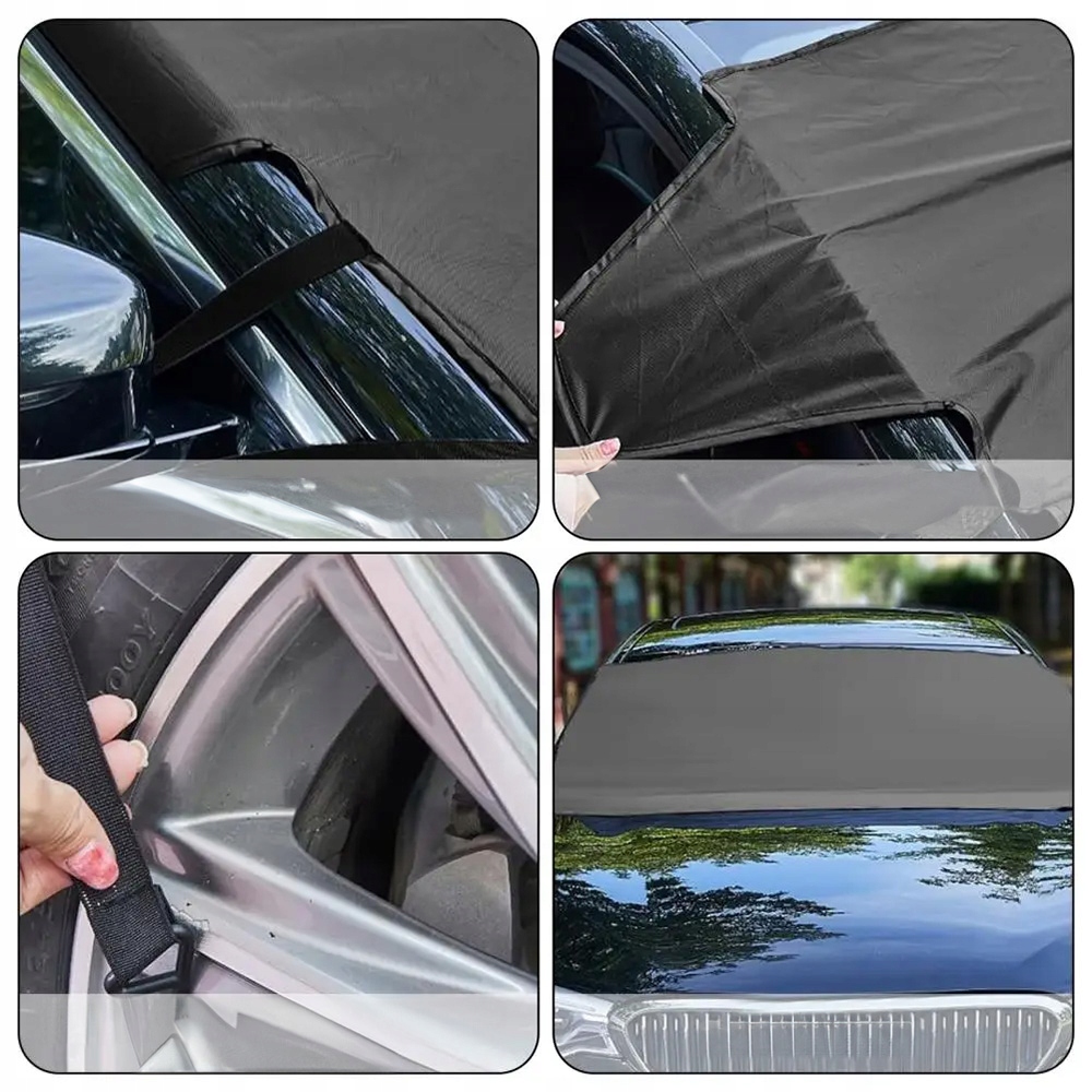 Взимку його можна використовувати як захист від морозу автомобіля, щоб захистити вікна автомобіля від морозу та льоду. Влітку він служить захистом від сонця, запобігає потраплянню ультрафіолетових променів і тепла всередину автомобіля, продовжує термін служби склоочисників і вітрового скла. Вам більше не потрібно турбуватися про сонячне світло, дощ, сніг, вітер, пил, смолу, листя, забруднення та пташиний послід тощо.