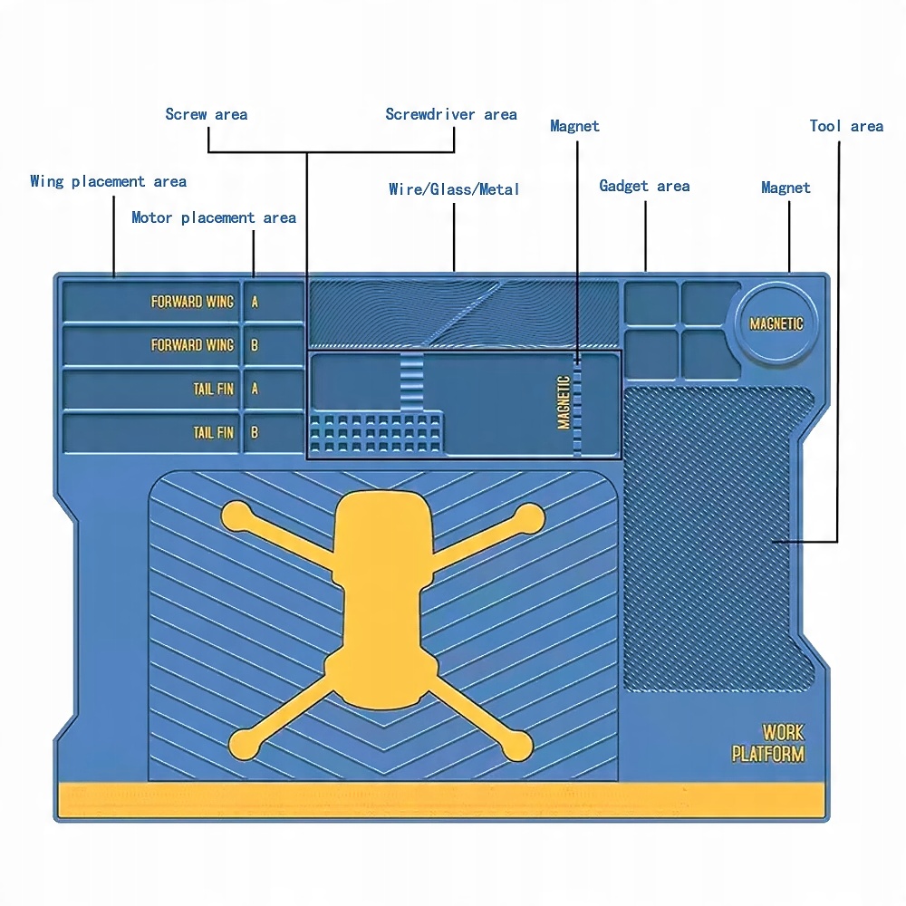 Високотемпературний силіконовий килимок розміром 515x365 мм призначений для обслуговування та побудови дронів.