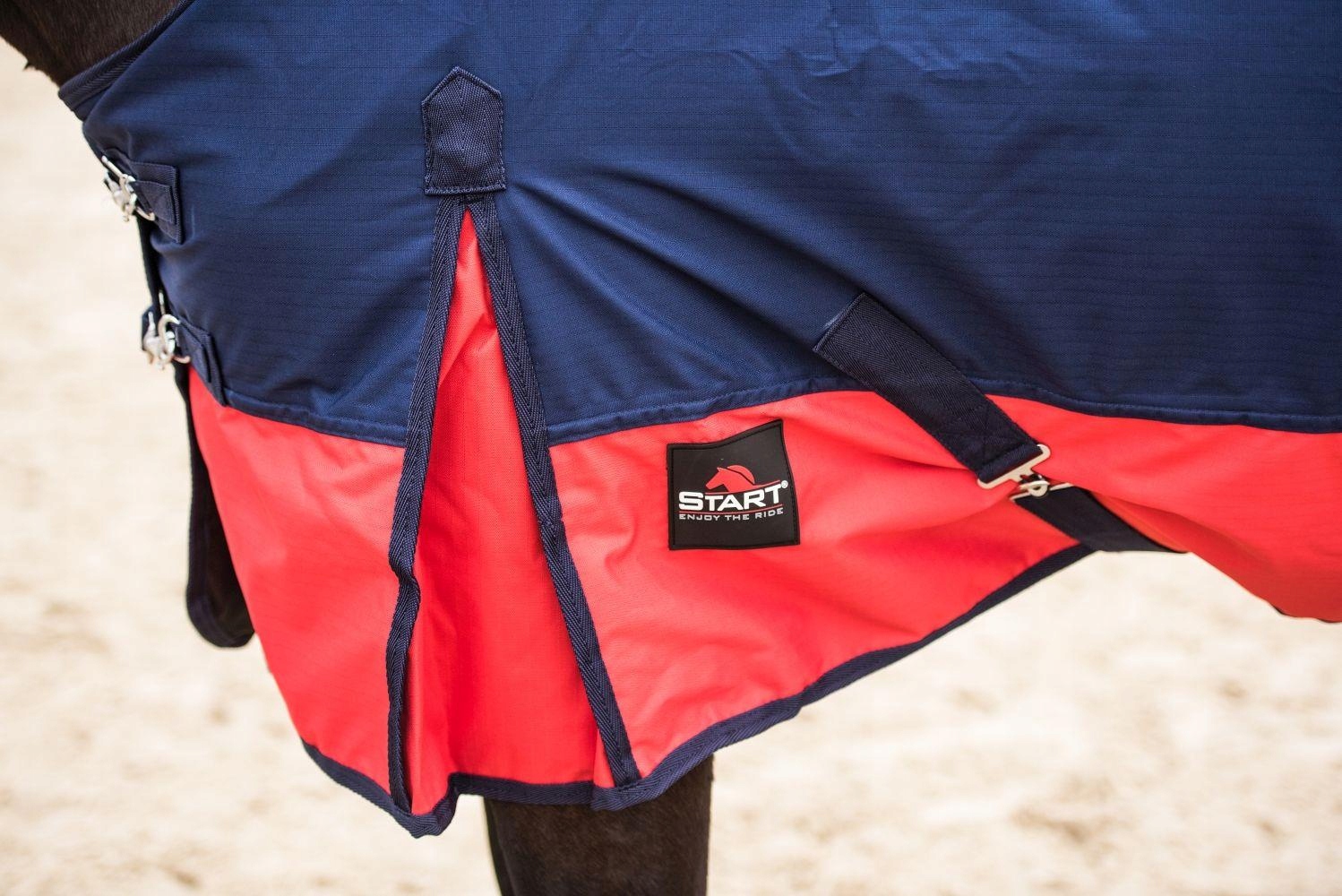 Килимок, який ідеально підійде для дощових днів. Він виготовлений з водонепроникного дихаючого матеріалу RipStop вагою 600 DEN. Підкладений приємним на дотик флісом. Має подвійні ремені для швидкого застібання та стабільного регулювання. Матеріальні прорізи на лопатках забезпечують свободу рухів, а поперечні лямки запобігають ковзанню килимка. Має хутряну підкладку на холці та хвіст. Він також має знімні ремені для ніг. Килимок без наповнювача. Зручно і практично!