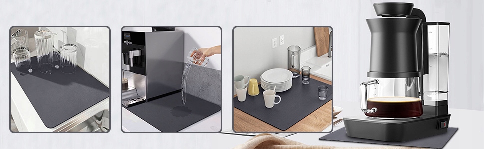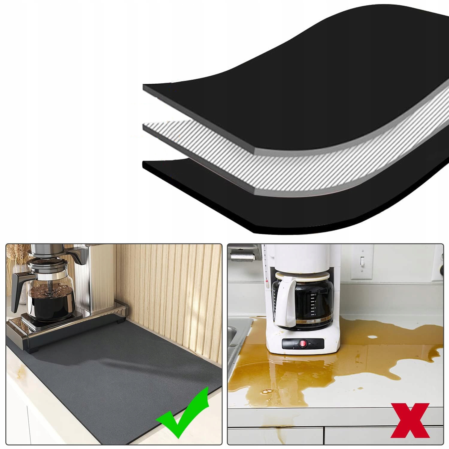☕☕Багатофункціональний - Килимок для сушіння — це не лише кухонний аксесуар, як-от килимок для сушіння посуду, раковини, килимок для кавоварки, але також килимок для змішувача, тримач для губки (вирізаний власноруч) у ванній кімнаті, килимок для миски для тварин тощо. Він ефективно зберігає ваше оточення сухим і чистим без жодних зусиль.