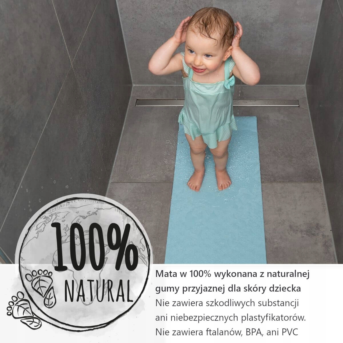- Килимок на 100% виготовлений з натурального каучуку, приємний до шкіри. Не містить бісфенолу А, ПВХ, фталатів та інших шкідливих речовин