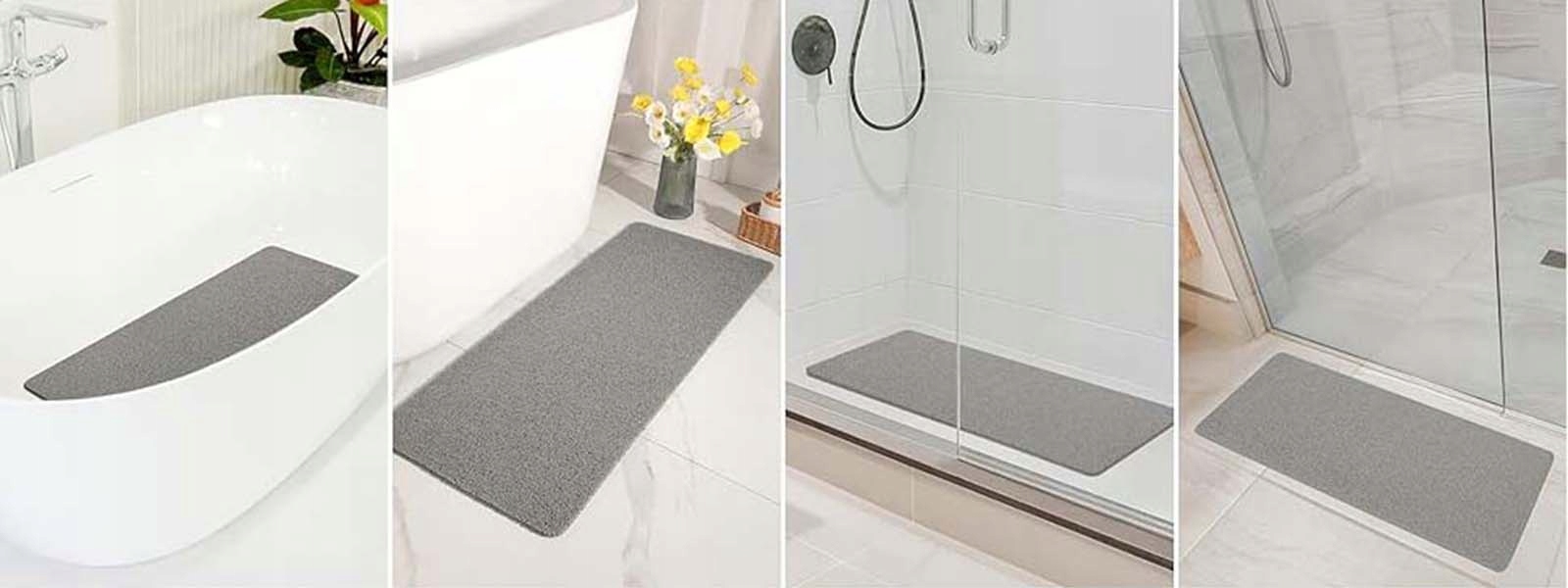 Килимки для ванної кімнати та килимки для душу з присосками зазвичай збирають пил, і їх можна легко переміщати по гладкій поверхні. Тому ми вибрали конструкцію без присосок. Завдяки цьому килимок залишається рівним під вашими ногами та забезпечує м’який і зручний дотик.